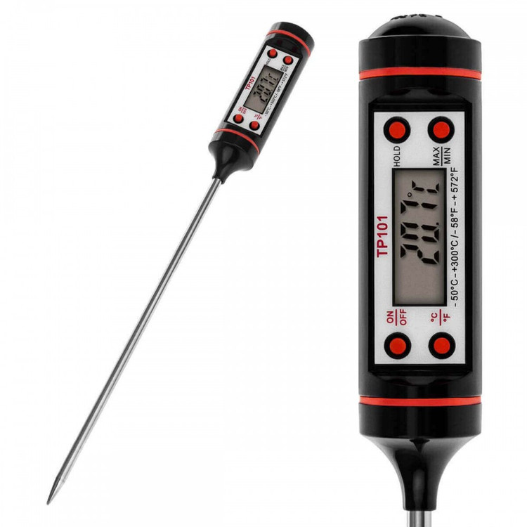 دماسنج میله ای Tp101یکی ازدماسنج هایی می باشد که هم استفاده صنعتی دارد وهم استفاده خانگی ،این مدل برای اندازه گیری دمای مایعات می باشد،درمنزل برای اندازه گیری دمای غذاوآب جوش ومواردی ازاین قبیل ودر محیط های صنعتی هم جهت اندازه گیری موادشیمیایی ومایعات،محدوده اندازه گیری 50-الی 300+ می باشدودارای سیستم خاموشی اتوماتیک بعداز مدتی کارنکردن دستگاه می باشدوقابلیت ذخیره دمارادارد. برای جلوگیری از آسیب احتمالی میله سنجش ، دستگاه در یک محفظه شفاف محافظ ارائه می شود.تغذیه دستگاه را یک باتری AG13 تامین می کند.